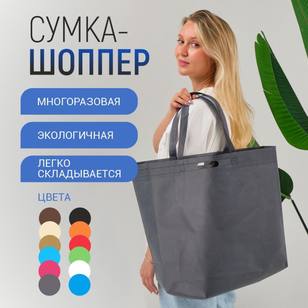 Многоразовый шоппер из нетканого материала с надежными пришивными ручками. Сумка из спанбонда приятная на ощупь, легкая и компактная.